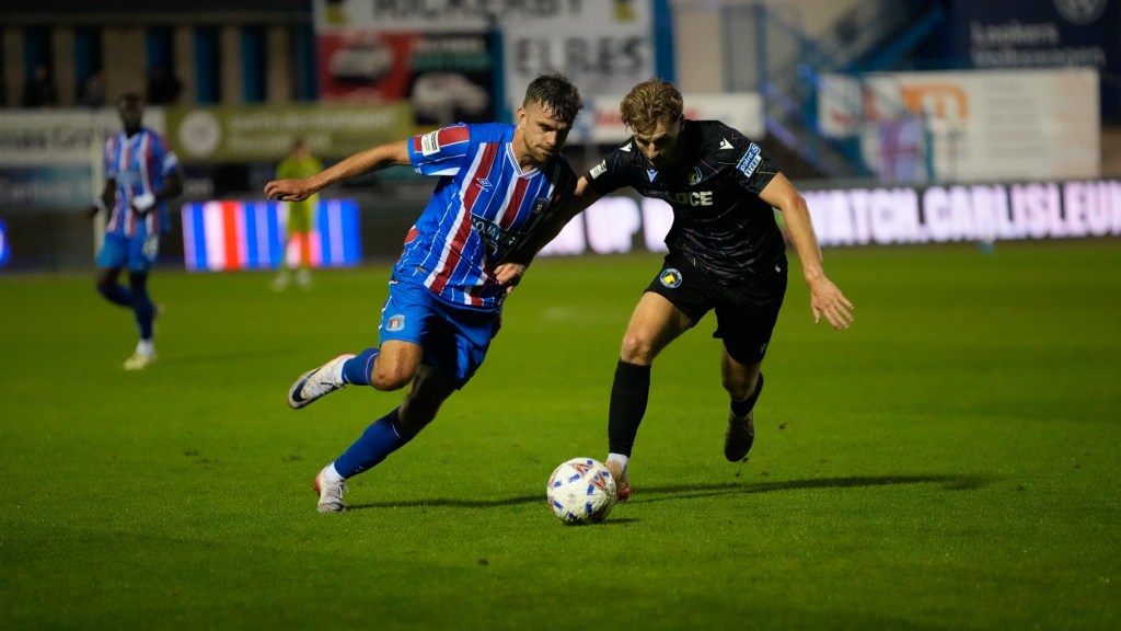 Rochdale knew a win would see them move, albeit temporarily, top of the National League table and looked every bit the team that their position suggested, dominating possession and controlling the game in the opening 10 minutes or so, with Carlisle really labouring to try and get the ball and struggling to string multiple passes together. The Dale almost doubled their lead in the 16th minute as Tobi Adebayo-Rowling found Connor McBride just inside the area before McBride spun onto his left foot round the challenge of Callum Whelan, but his curling effort struck the foot of Gabe Breeze’s right hand post.